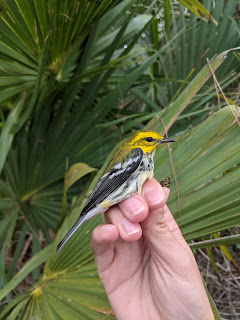 With this new push of birds, surely some new species were to appear, and that they did! We caught our first Black-throated Green Warbler of the season. This hatch-year male was a stunning sight and a very infrequent catch.